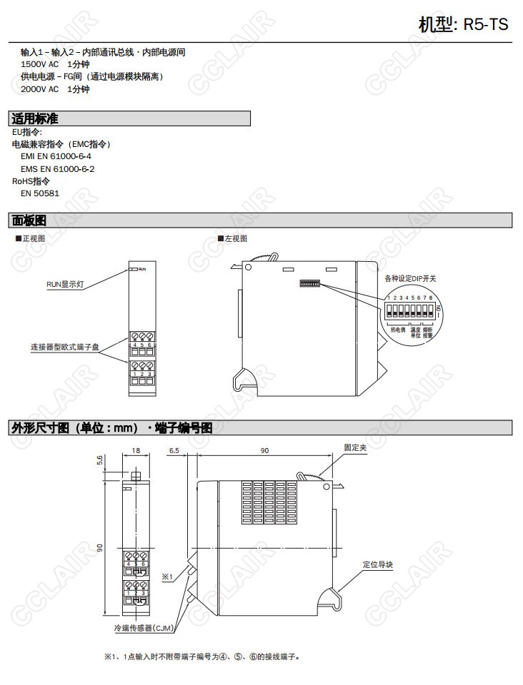 R5-TS/R5T-TS,R5-TS2W/Q,R5-TS1S,R5-TS1W,R5-TS2S,R5-TS2W热电偶信号输入,R5T-TS2W/Q,R5T-TS1S,R5T-TS1W,R5T-TS2S,R5T-TS2W,R5-TS:欧式端子型;R5T-TS:螺丝端子型