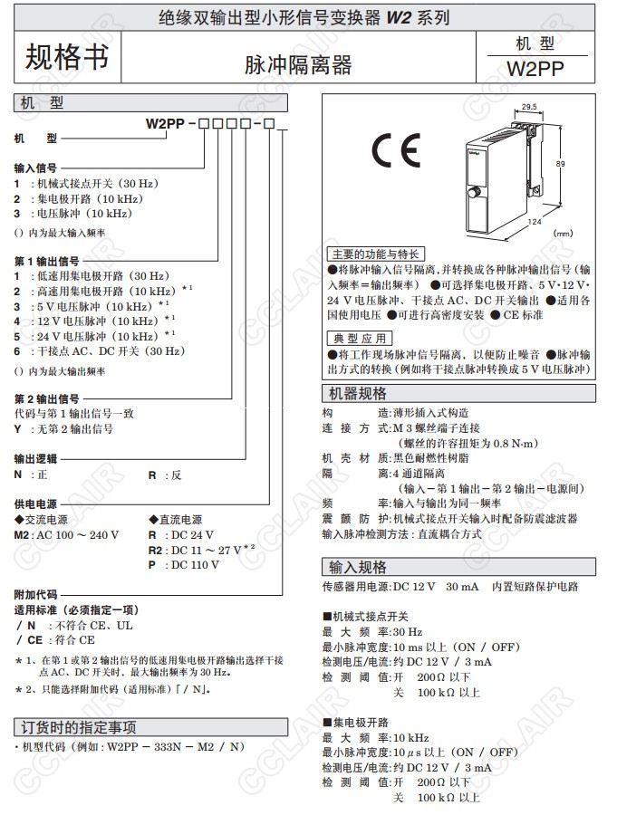 W2PP,W2PP-612-M2/CE,W2PP-A11,W2PP-D11,W2PP-G11,W2PP-H11,W2PP-011,脉冲隔离器
