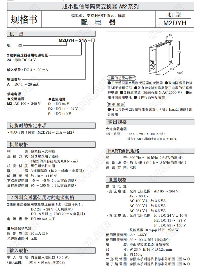 M2DYH,M2DYH-24A-M2,M2DYH-24A-R,M2DYH-24A-R2,M2DYH-24A-P,配电器(模拟 型、支持HART通讯、隔离)