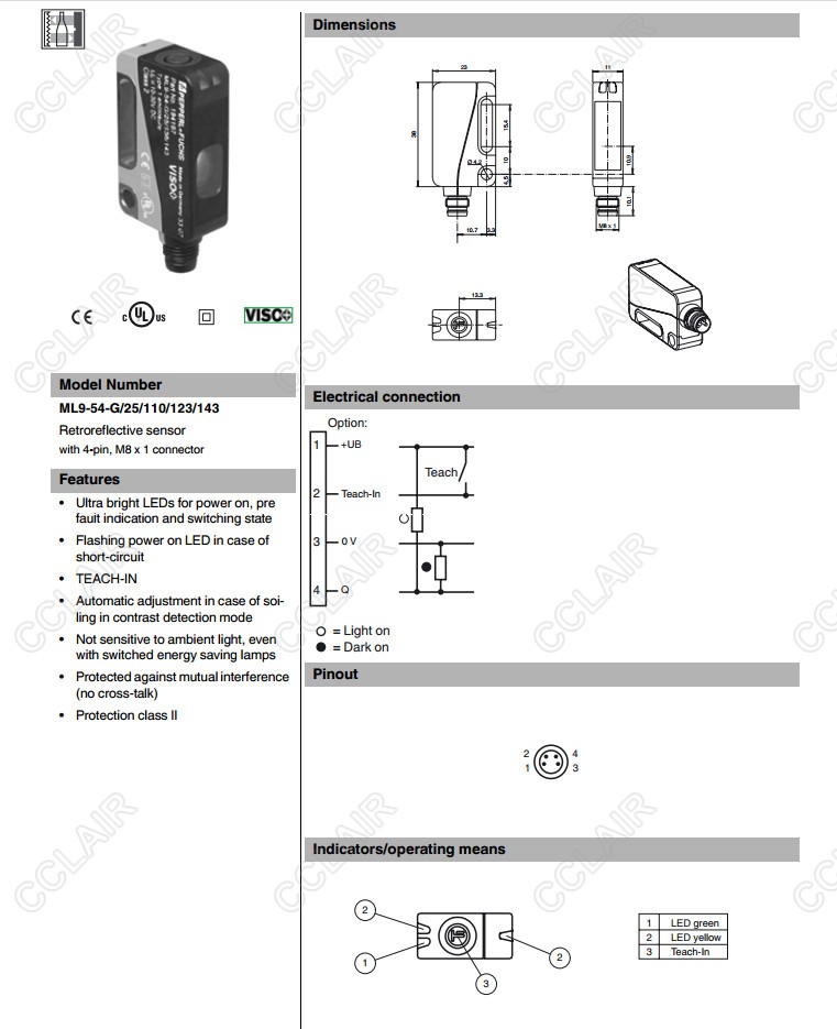 ML9-54-G/102/126b/143,ML9-54-G/25/110/123/143,反射板型传感器