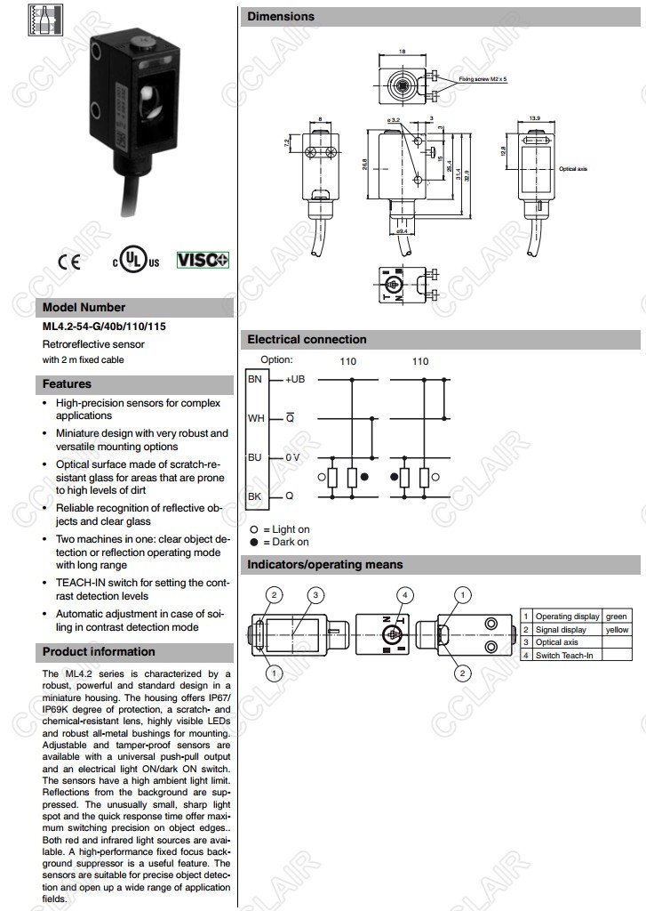 ML4.2-54-G/40b/110/115,反射板型传感器