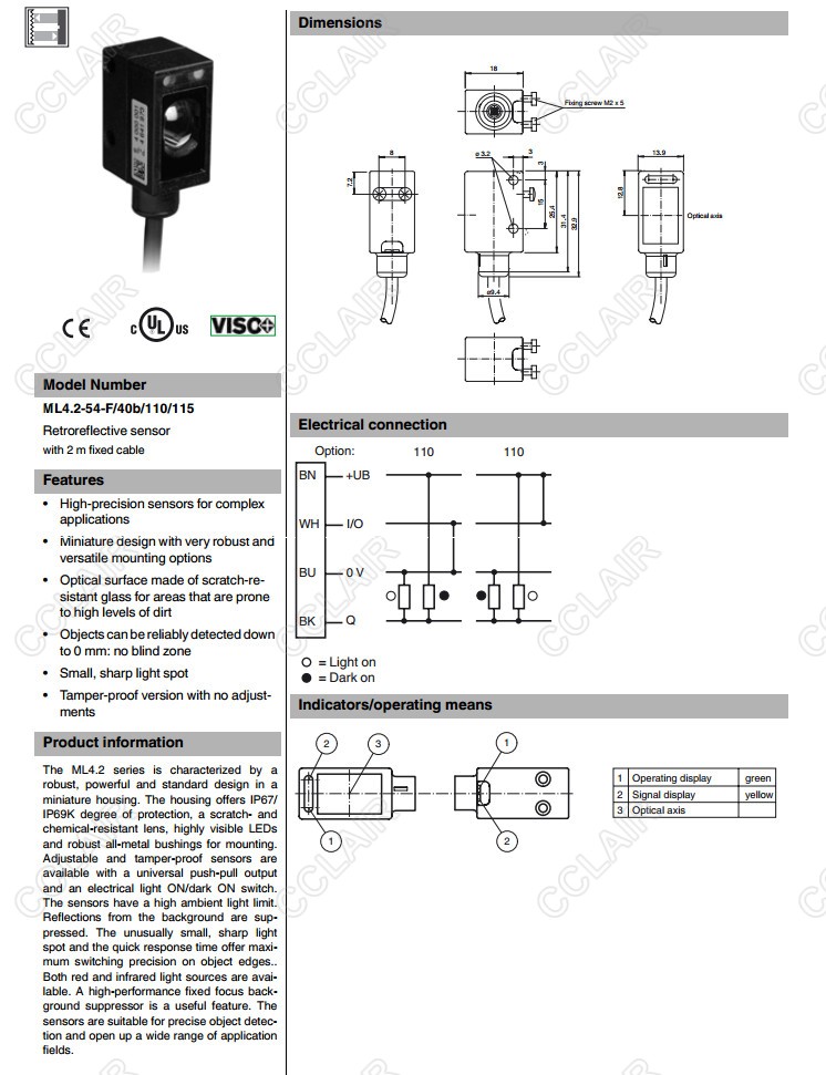 ML4.2-54-F/40b/110/115,反射板型传感器
