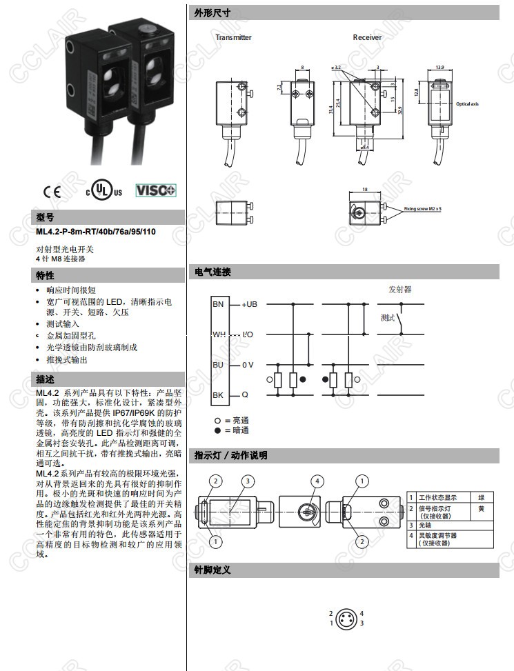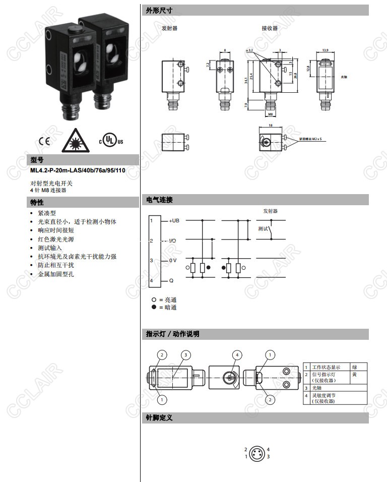 ML4.2-P-20m-LAS/40b/76a/95/110,ML4.2-P-8m-RT/40b/76a/95/110,对射型传感器
