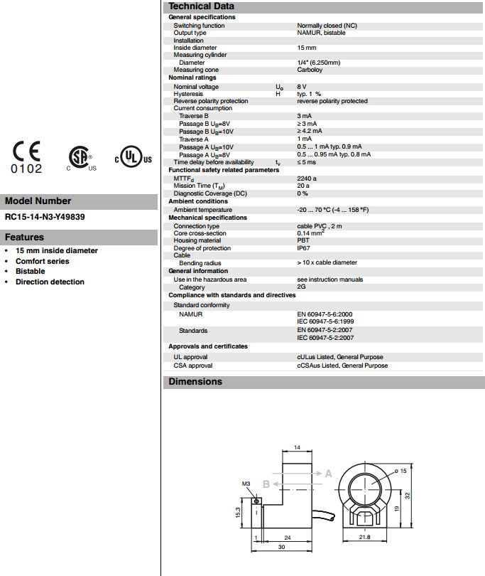 RC15-14-N3-Y49839电感式接近开关