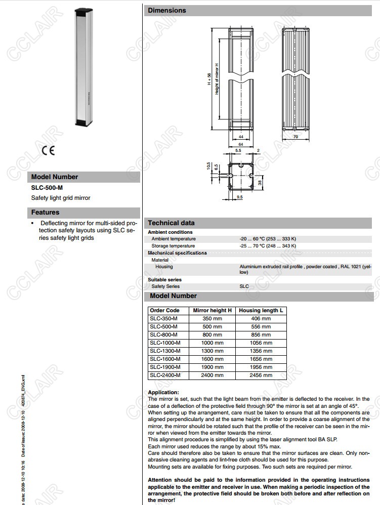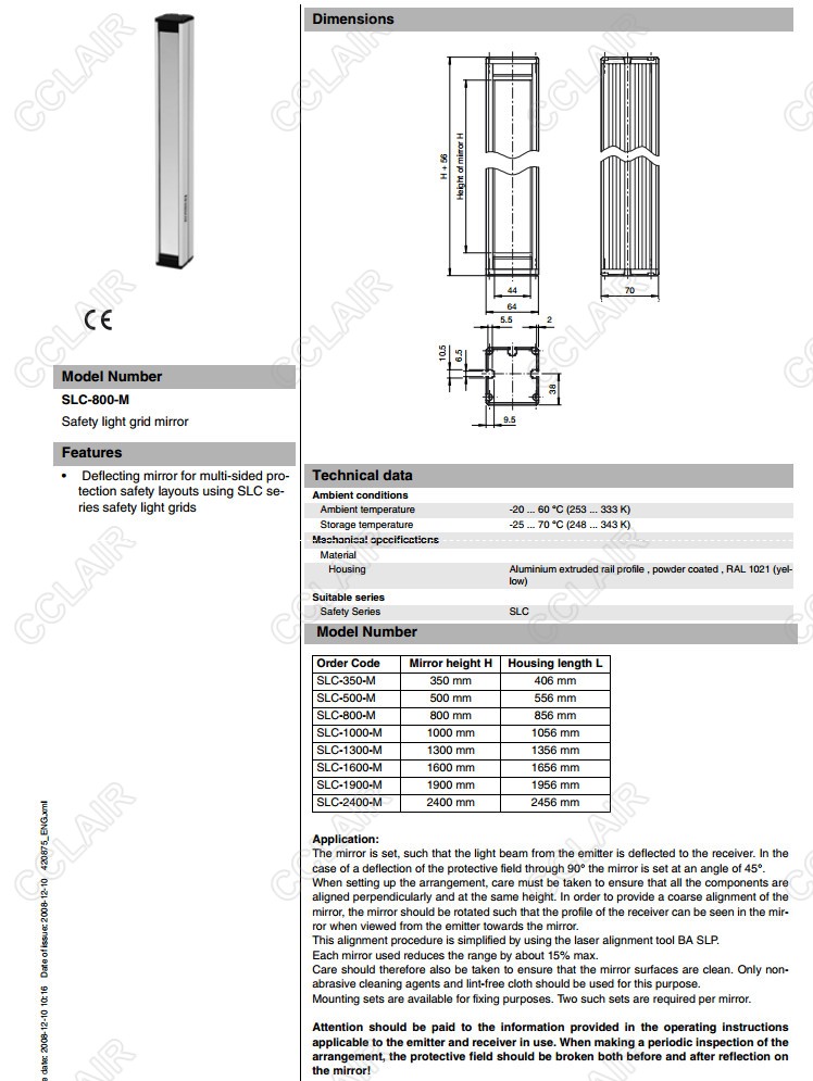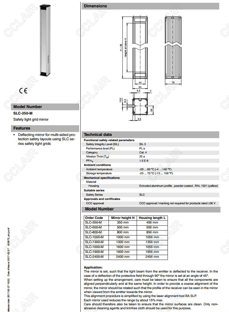 SLC-350-M,SLC-500-M,SLC-800-M,安全光栅反光镜
