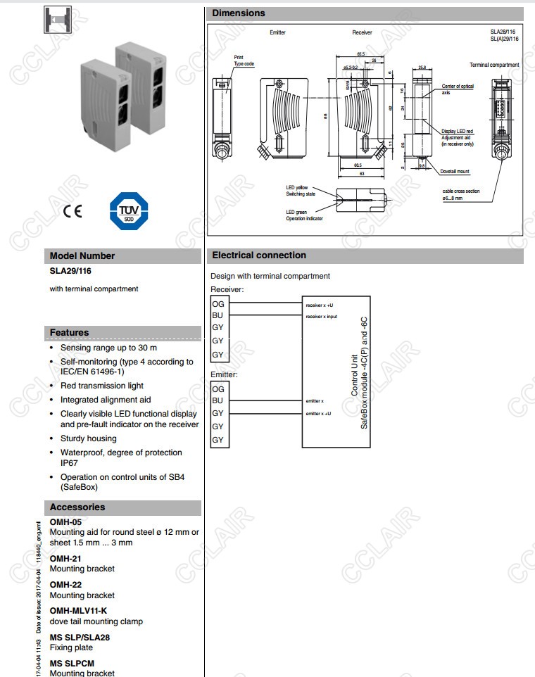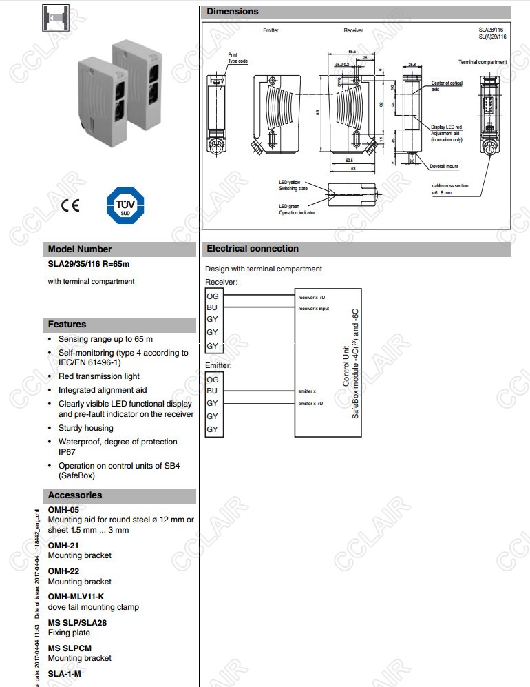 SLA29/116,SLA29/35/116 R=65m,对射型安全光电传感器