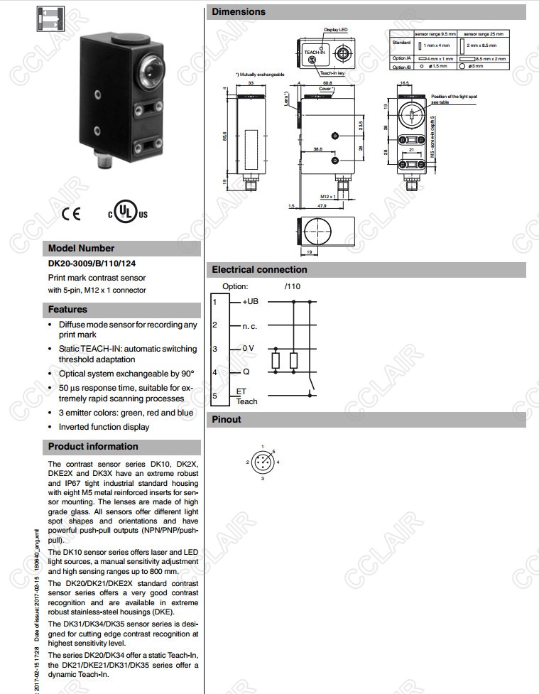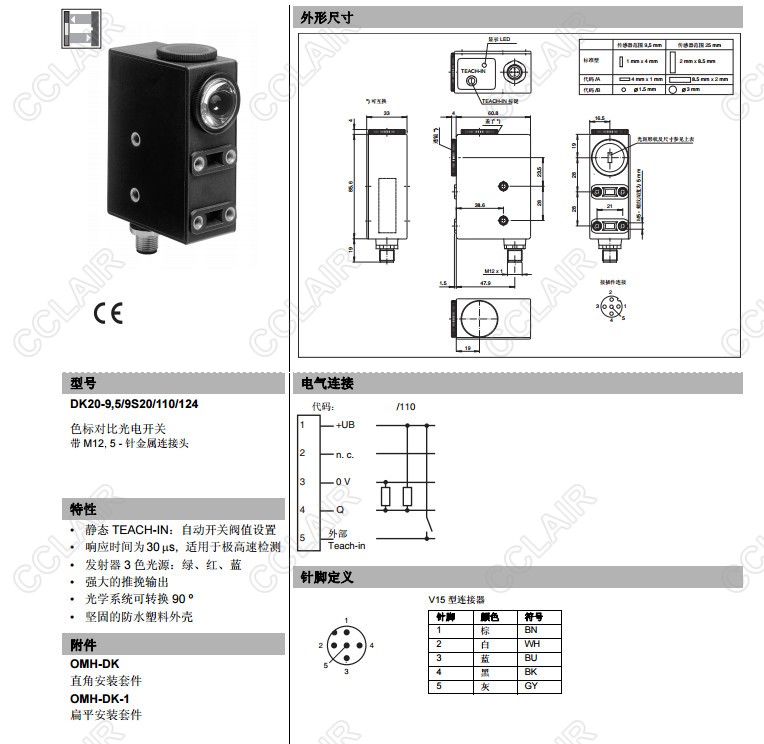 DK20-3009/B/110/124,DK20-9,5/9S20/110/124,DK20-9,5/B/79B/110/124,色标对比度传感器