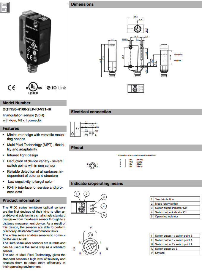 OQT150-R100-2EP-IO-V31-IR,开关传感器