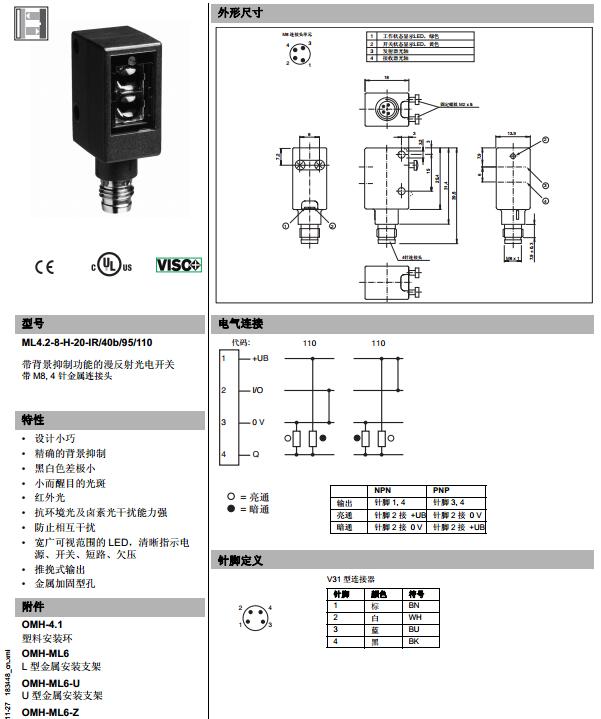 ML4.2-8-H-20-IR/40b/95/110,漫反射型传感器