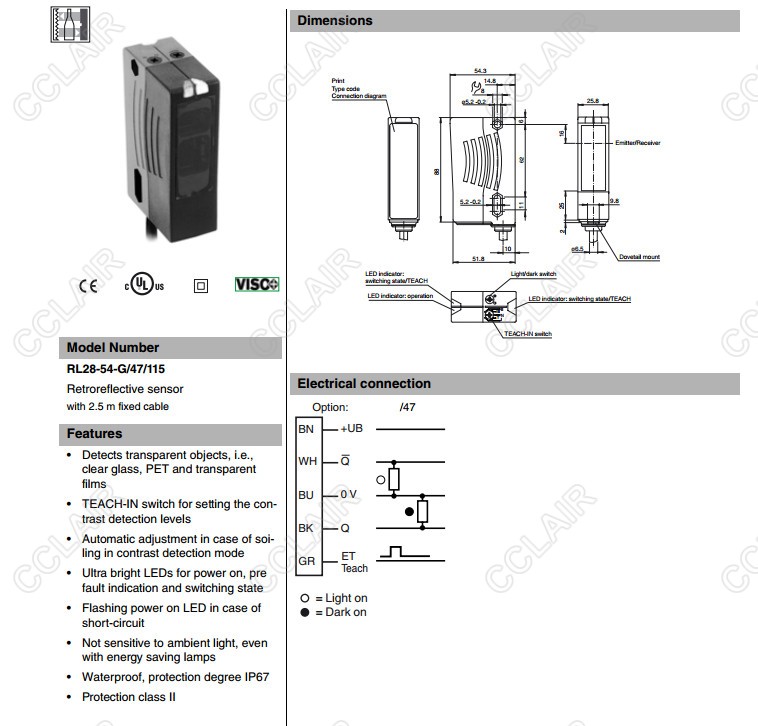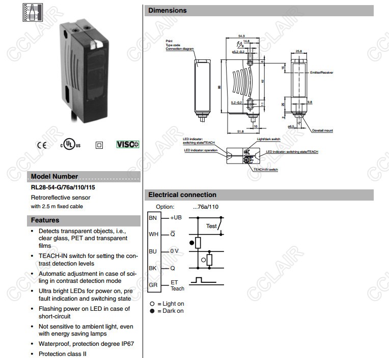RL28-54-G/47/115,RL28-54-G/76a/110/115,RL28-55-2547/47,反射板型传感器