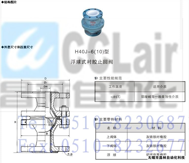 H40F46-0.6,H40F46-1.0,H40F46-6.0,H40F46-10,浮球式衬氟止回阀