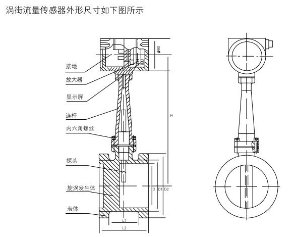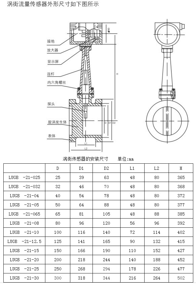 涡街传感器的安装尺寸 单位:mm | ||||||