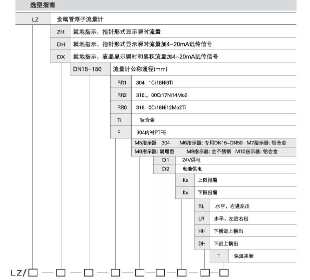 LZ-DX-15,LZ-DX-25,LZ-DX-40,LZ-DX-50,LZ-DX-80,LZ-DX-100,LZ-DX-150,金属管浮子流量计M5指示器
