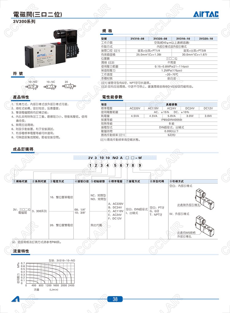 3V310-08-NC,3V310-08-NO,3V320-08-NC,3V320-08-NO,3V310-10-NC,3V310-10-NO,3V320-08-NC,3V320-08-NO,AIRTAC电磁阀