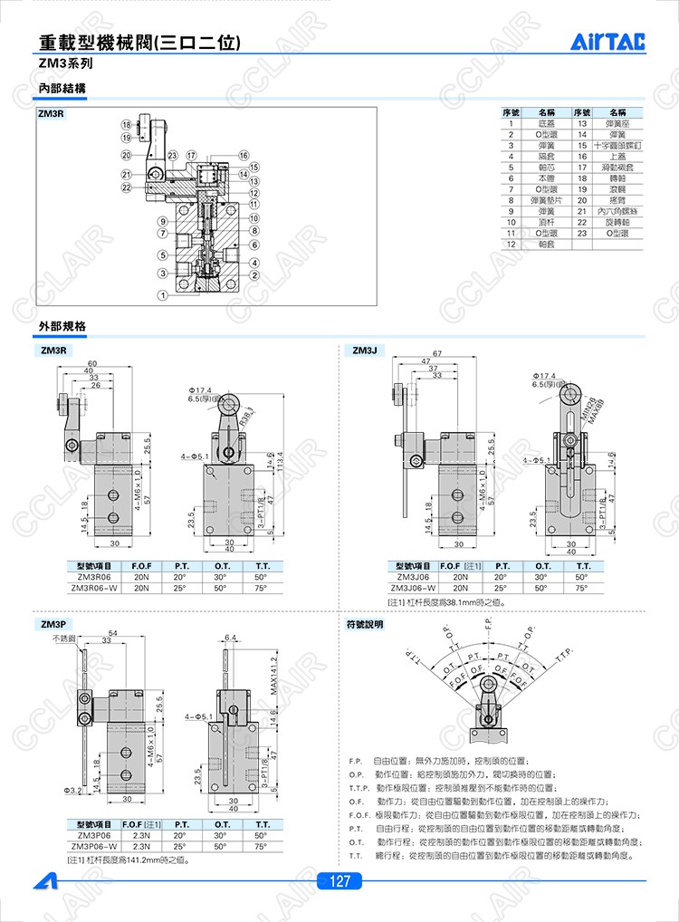 ZM3R-06,ZM3J-06,ZM3P-06,ZM3R-06-W,ZM3J-06-W,ZM3P-06-W,AIRTAC重载型机械阀