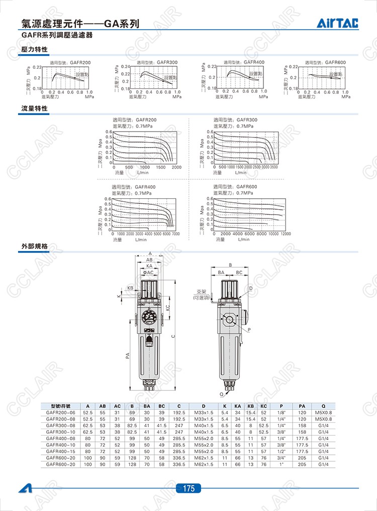 GAFR200-06,GAFR200-08,GAFR300-08,GAFR300-10,GAFR400-08,AIRTAC调压过滤器