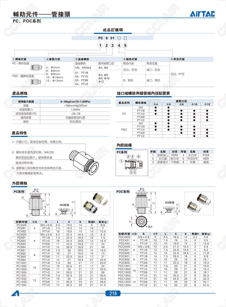 PC4M5,PC401,PC402,PC6M5,PC601,PC602,PC603,PC604,PC801,PC802,PC803,PC804,台湾AIRTAC管接头