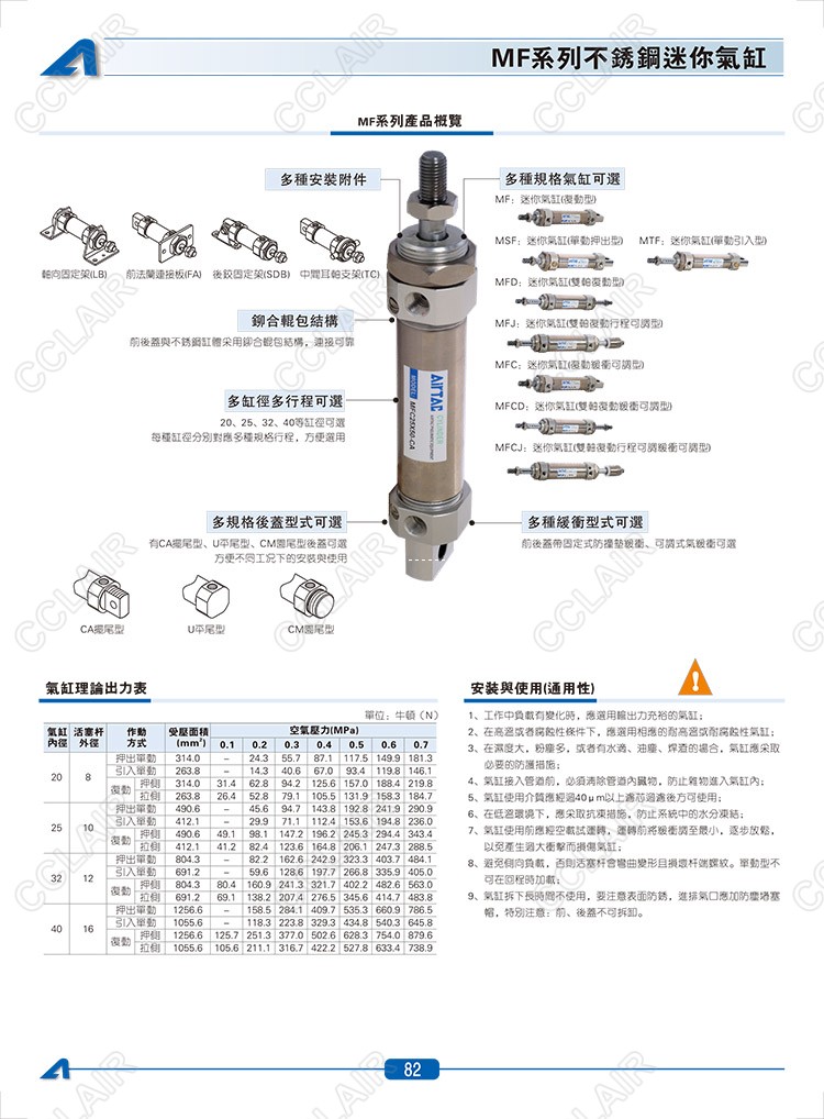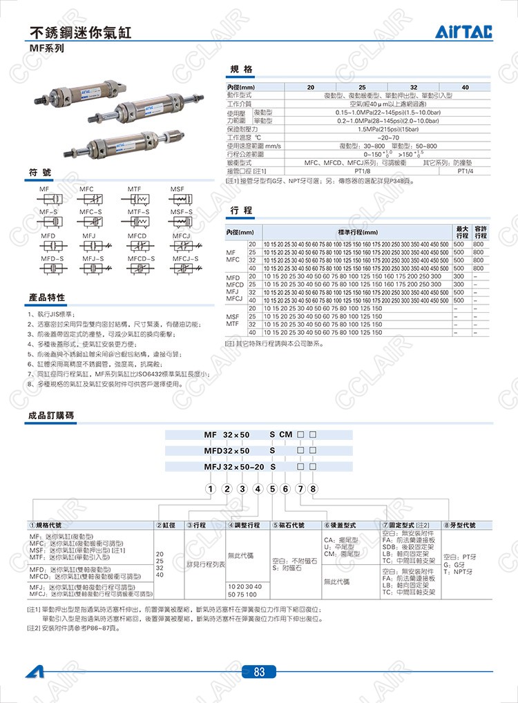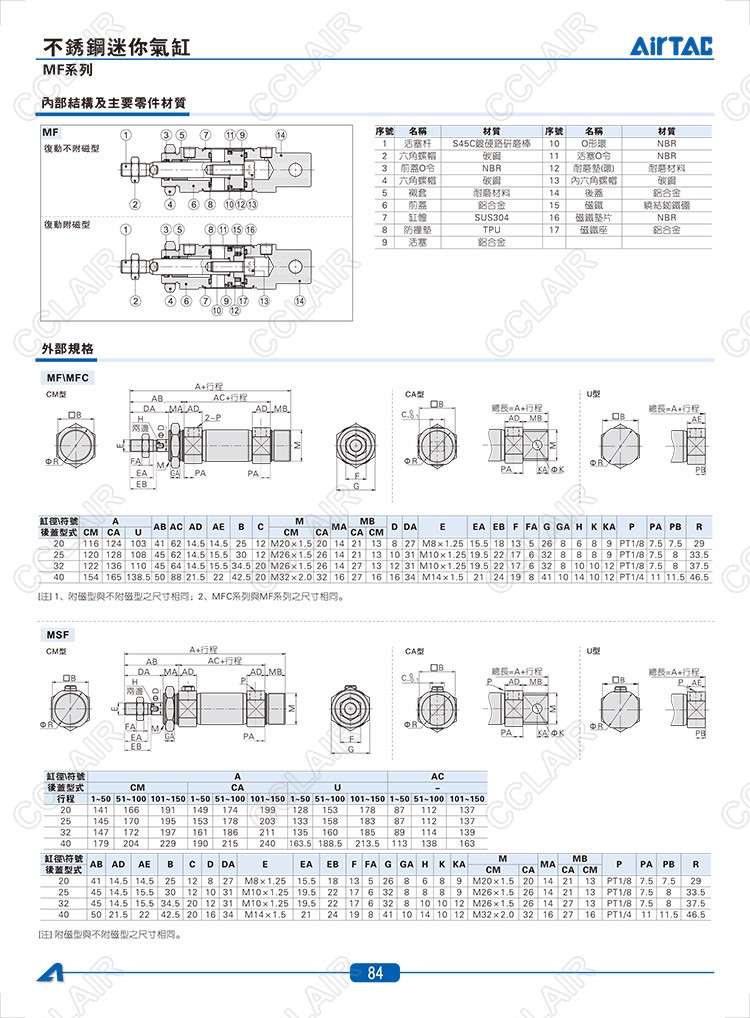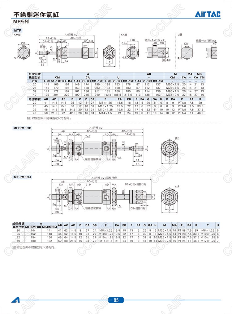 MF20*10-CA,MFC20*10-U,MFD20*10,MFJ20*10,MFCD20*10,MFCJ20*10,MSF20*10-CM,MTF20*10-U,AIRTAC亚德客迷你气缸