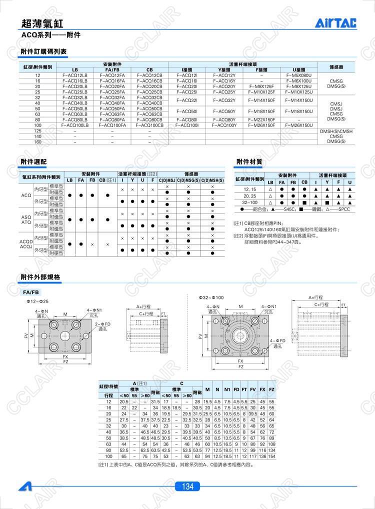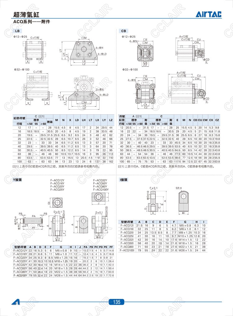 LB12,LB16,CB12,CB16,F-ACQ12Y,F-ACQ16Y,F-ACQ12I,F-ACQ16I,AIRTAC亚德客超薄气缸附件