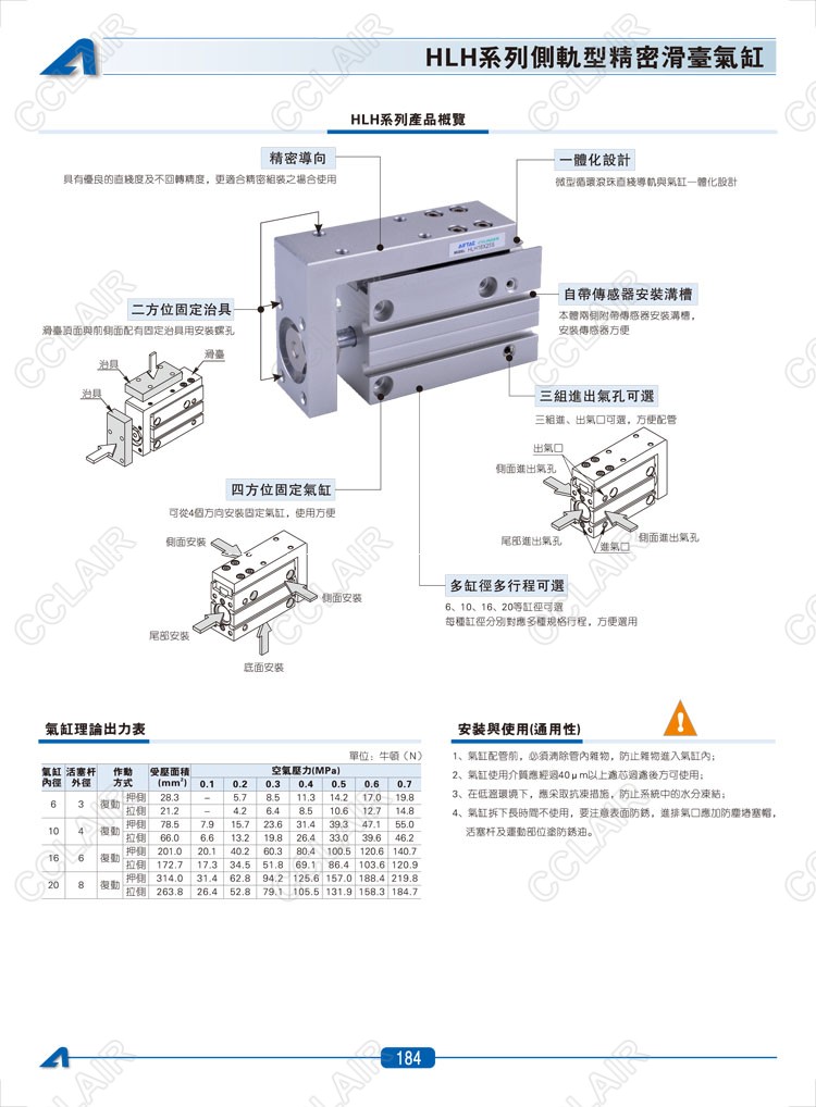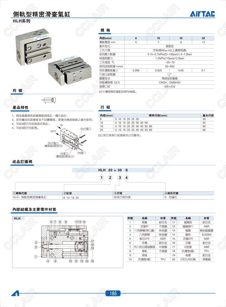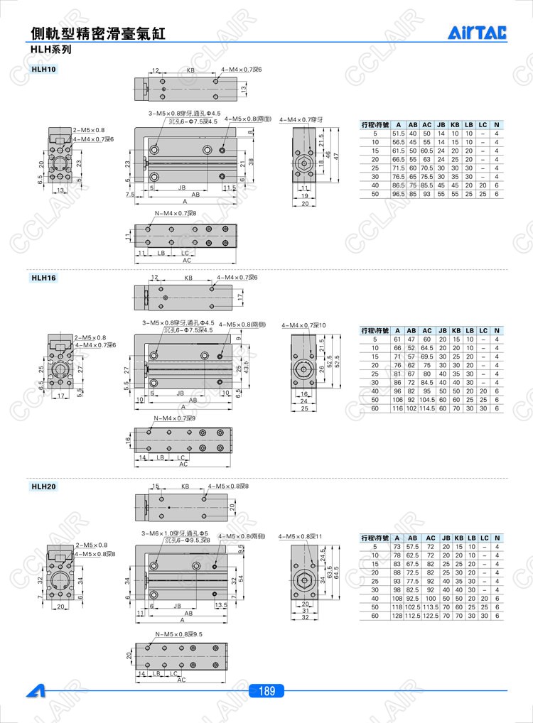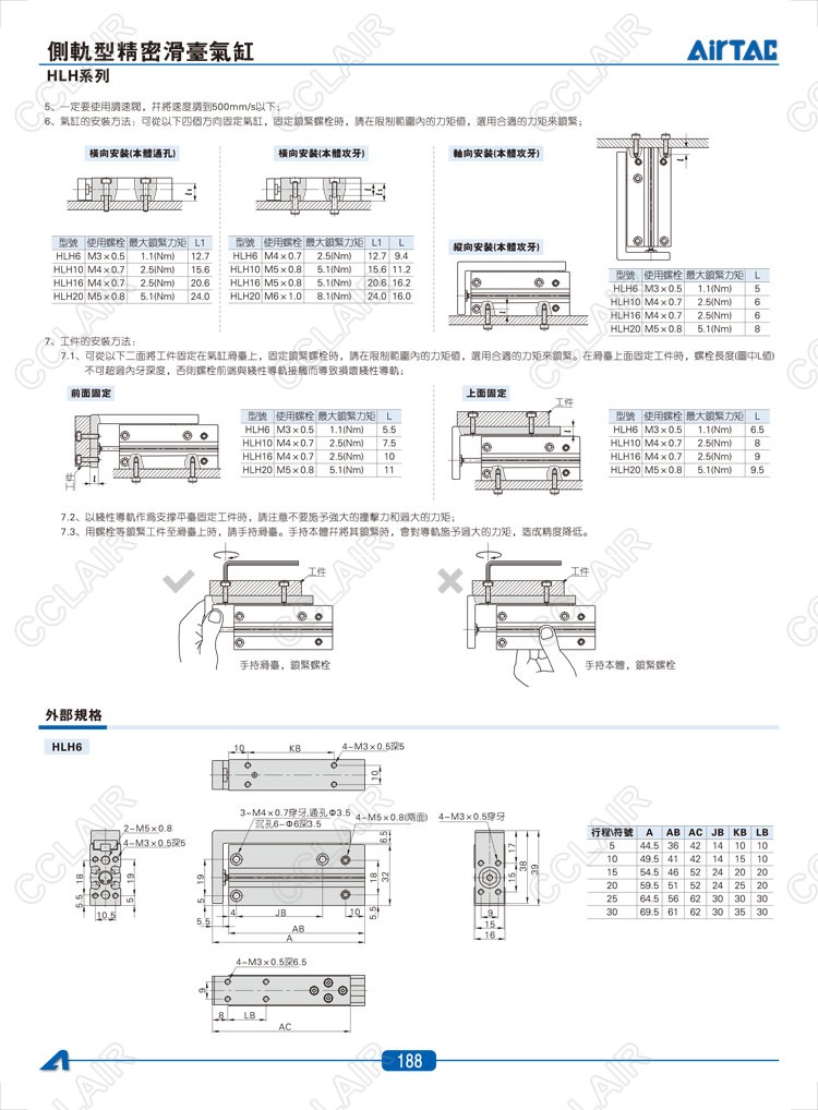 HLH6*5-S,HLH6*10-S,HLH6*15-S,HLH6*20-S,HLH6*25-S,AIRTAC亚德客侧轨型精密滑台气缸