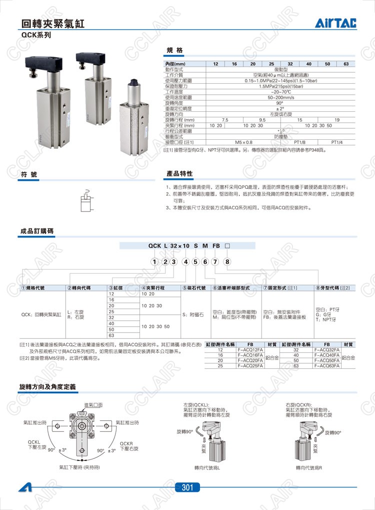 亚德客AIRTAC,QCKL12*10-S,QCKR12*10-S,QCKL20*20-S,QCKR20*20-S,QCKL40*30-S,QCKR40*30-S,回转夹紧气缸
