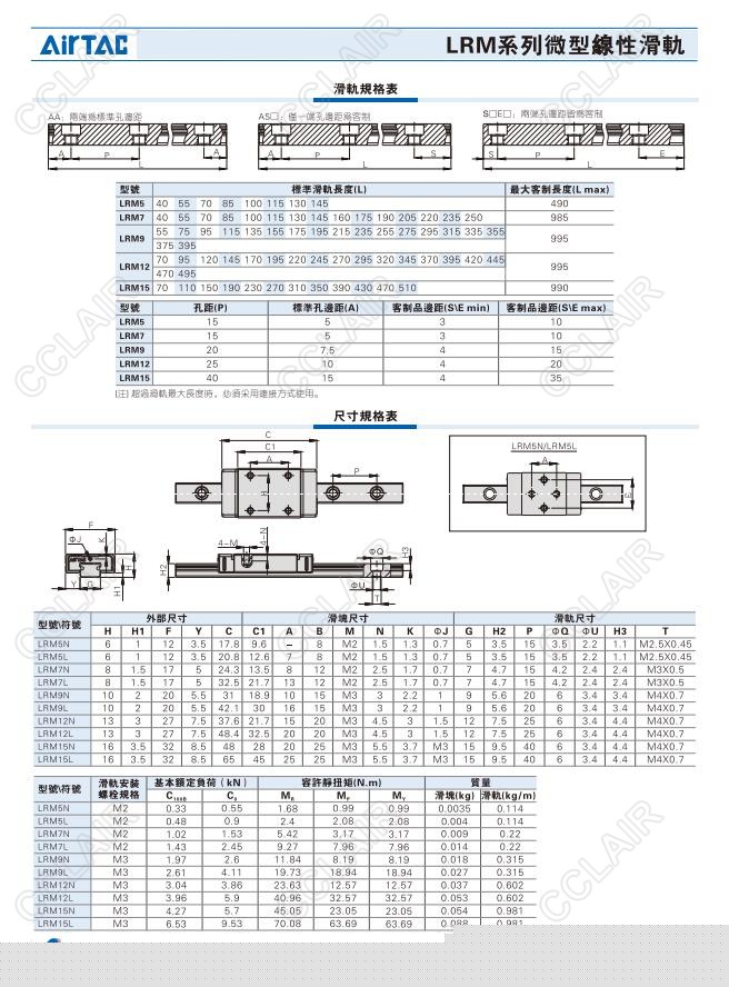 亚德客AIRTAC,LRM5N,LRM5L,LRM7N,LRM7L,LRM9N,LRM9L,LRM12N,LRM12L,LRM15N,LRM15L,微型线性滑轨