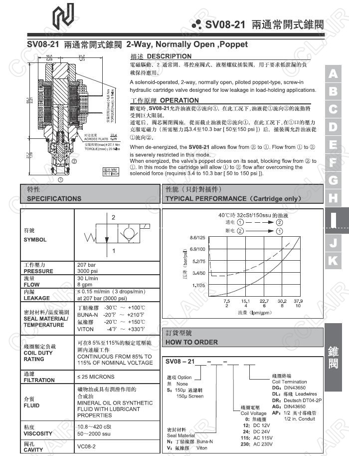 Northman北部精机,两通常开式锥阀SV08-21S-N-0-DG,SV08-21S-N-0-DL,SV08-21S-N-0-DR,SV08-21S-N-115-DR,SV08-21S-N-115-AG,SV08-21S-N-115-AP,SV08-21S-V-12-DG,SV08-21S-V-12-DL,SV08-21S-V-230-DR,SV08-21S-V-230-AG