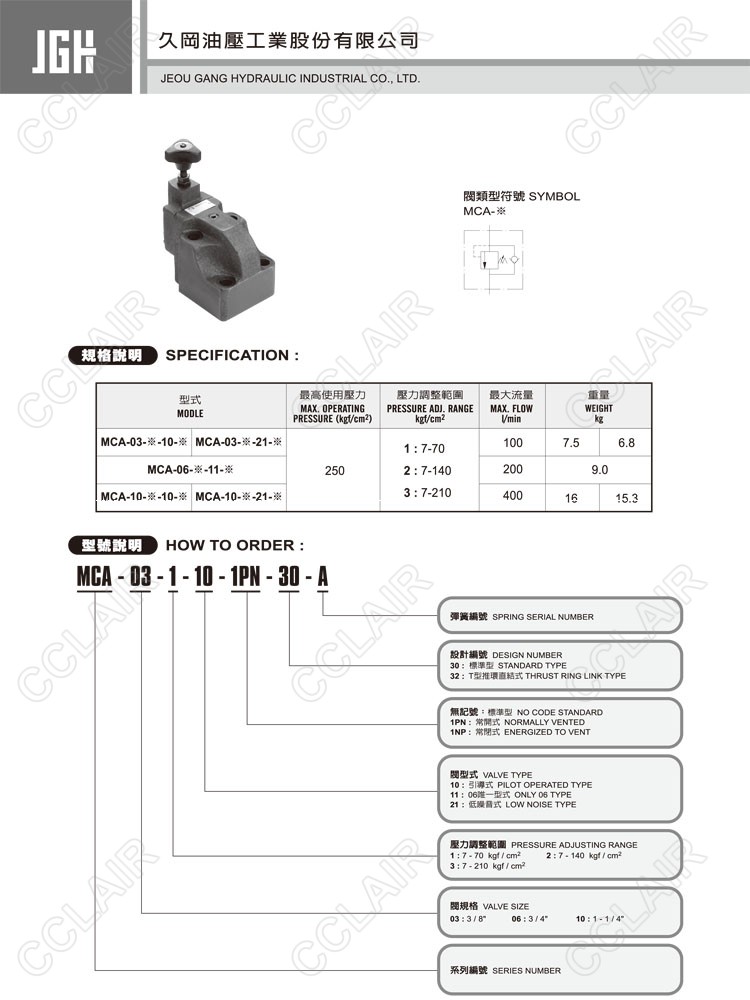 JeouGang台湾久冈,背压阀MCA-03-1-10-1PN-30-A,MCA-03-1-10-1PN-32-A,MCA-03-3-11-1NP-30-A,MCA-03-3-11-1NP-32-A,MCA-06-3-11-1PN-30-A,MCA-06-3-11-1PN-32-A,MCA-10-2-10-1NP-30-A,MCA-10-2-10-1NP-32-A,MCA-10-3-11-1PN-30-A,MCA-10-3-11-1PN-32-A