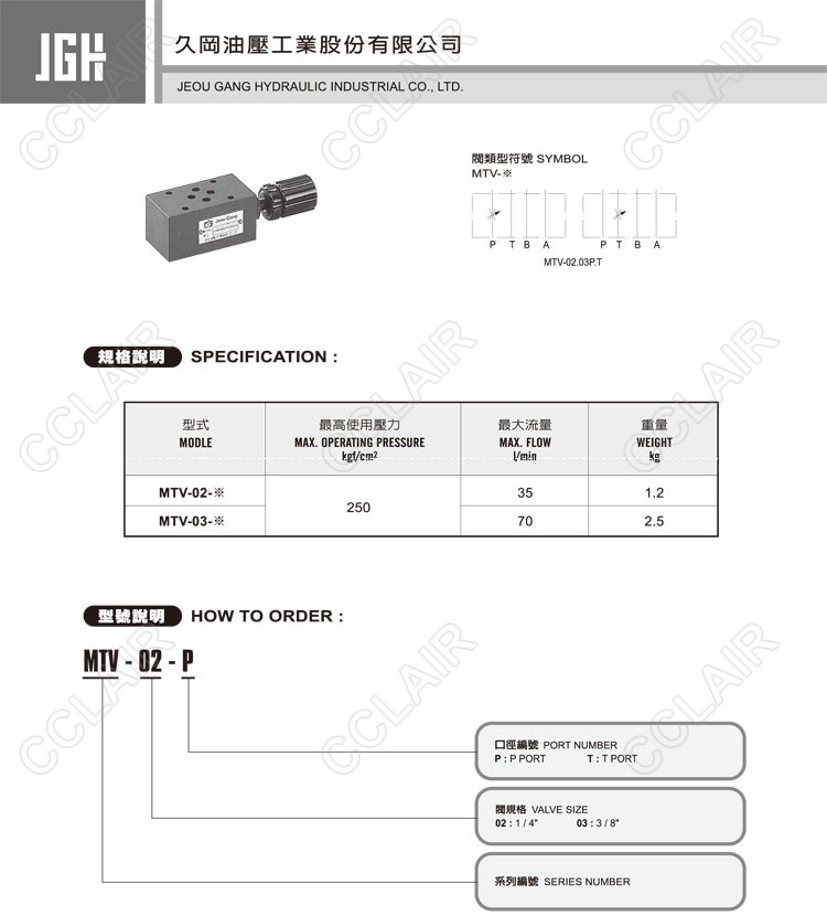 JeouGang台湾久冈,叠加式节流阀MTV-02-P,MTV-02-T,MTV-02-P,MTV-02-T