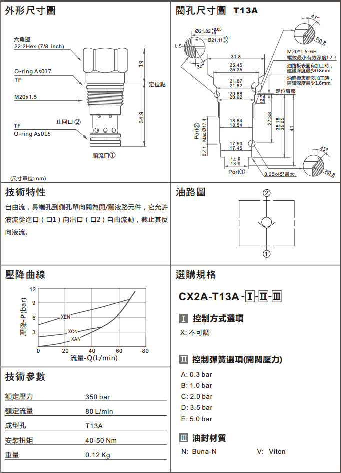 CX2A-T13A-XAN,CX2A-T13A-XBN,CX2A-T13A-XCV,CX2A-T13A-XEV,CX2A-T13A-XCN,CX2A-T13A-XDN,CX2A-T13A-XEN,CX2A-T13A-XAV, CX2A-T13A-XBV,CX2A-T13A-XDV,单向阀(口1通口2自由流)