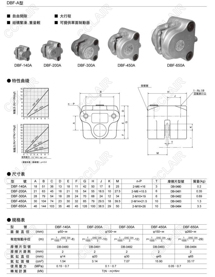 DBF-140A,DBF-200A,DBF-300A,DBF-450A,DBF-650A,空压蝶式制动器