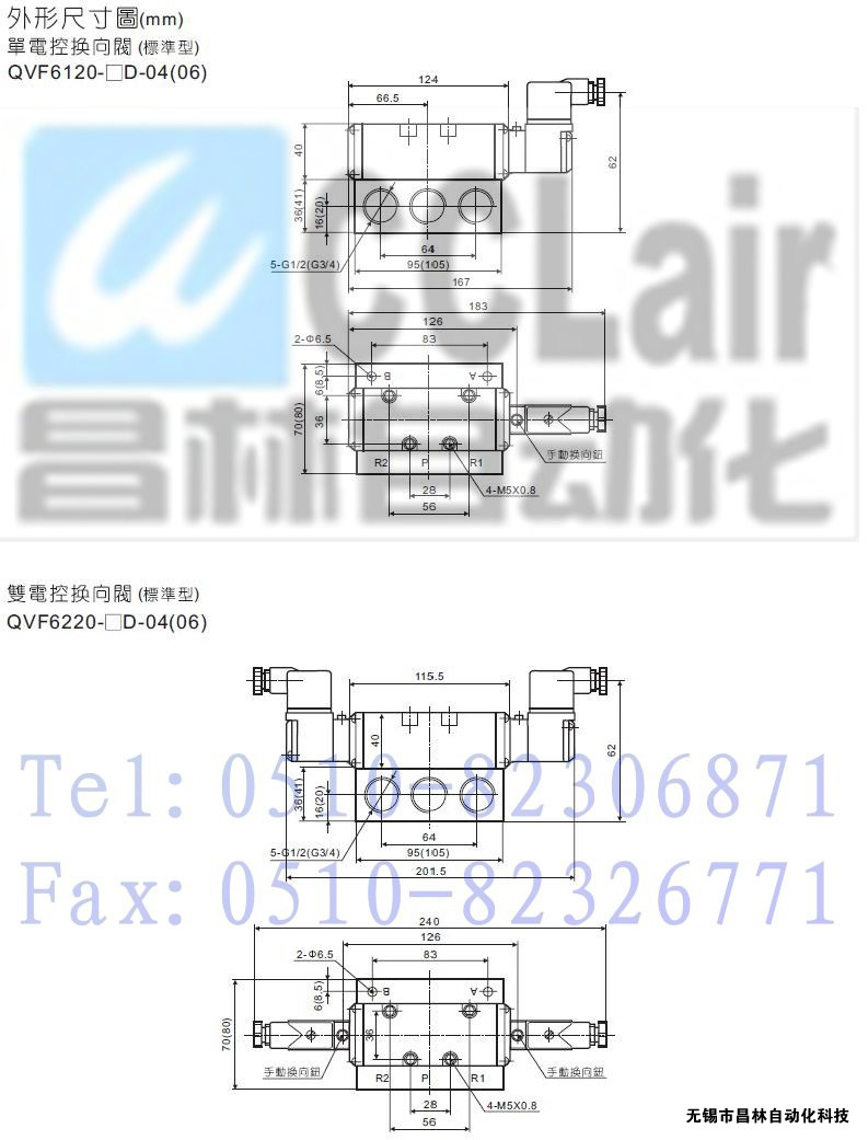 QVF6420-6G-04(06),QVF6420-6D-04(06),QVF6420-7G-04(06),二位/三位五通电控换向阀