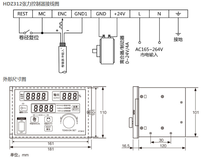 HDZ312型半自动张力控制器可以通过编码器或接近开关演算卷材的半径变化,自动调整张力输出值,对卷材进行恒力或锥度张力的控制。HDZ312还具有转矩补偿功能,使得张力曲线更加平坦,HDZ312型半自动张力控制器经常配套磁粉产品一起使用。
