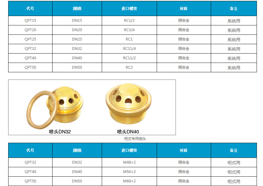 QPT15,QPT20,QPT25,QPT32,QPT40,QPT50,网管喷头