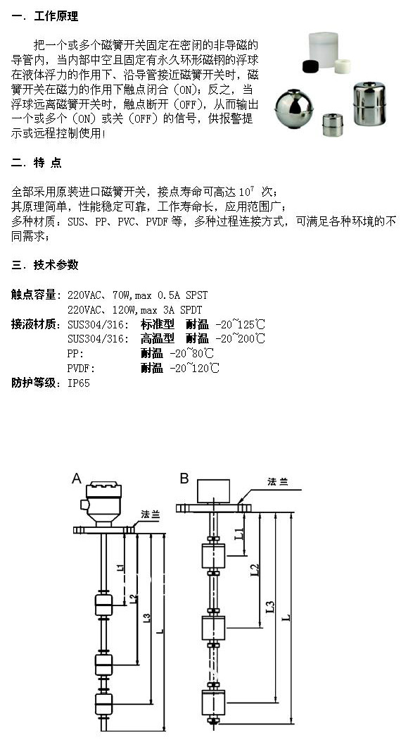 XFL-PP731-D2,超短型双浮球水位开关