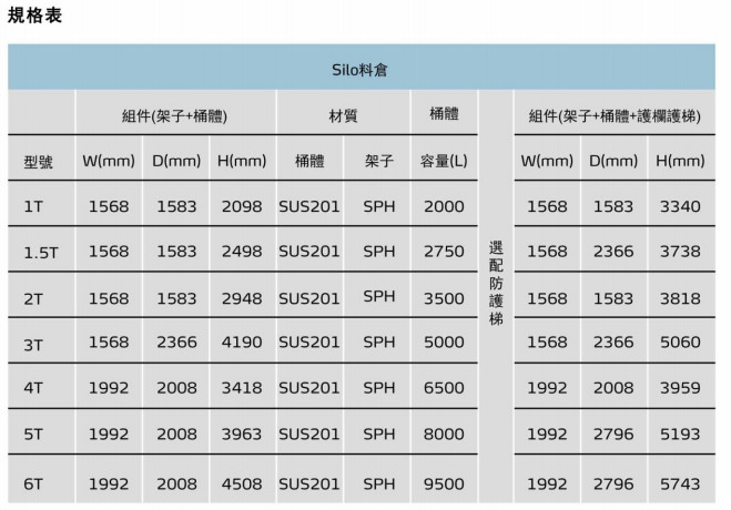 SS-1T,SS-1.5T,SS-2T,SS-3T,SS-4T,SS-5T,SS-6T,新型料仓