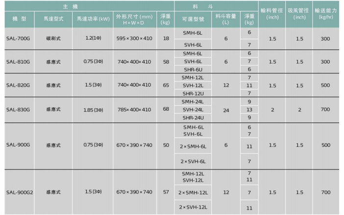 SAL-700G,SAL-810G,SAL-820G,SAL-830G,SAL-900G,SAL-900G2,分离式真空填料机