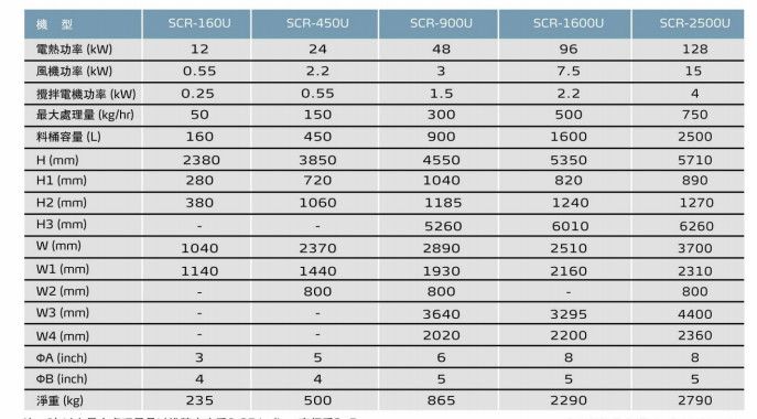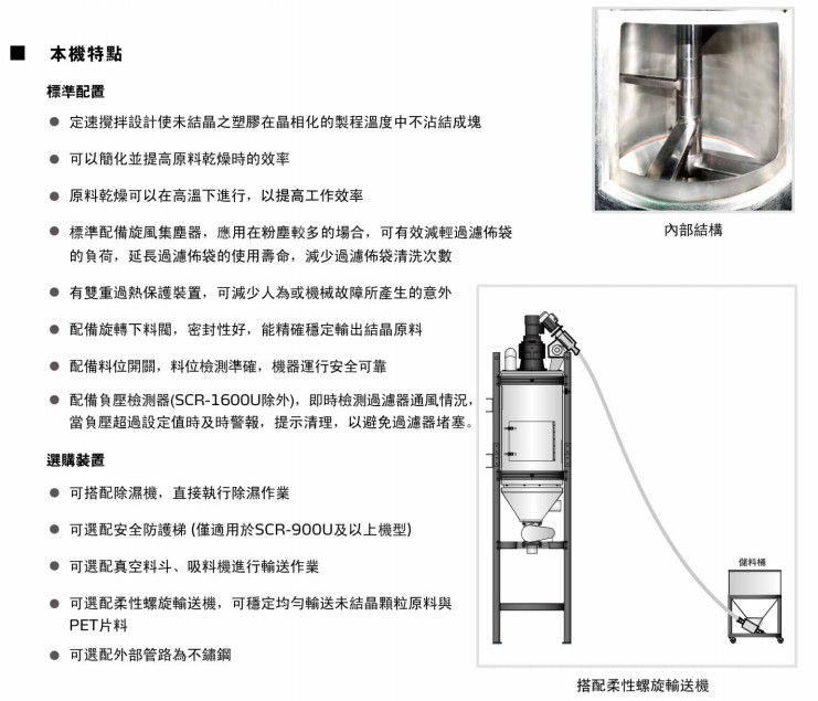SCR-160U,SCR-450U,SCR-900U,SCR-1600U,SCR-2500U,PET结晶机