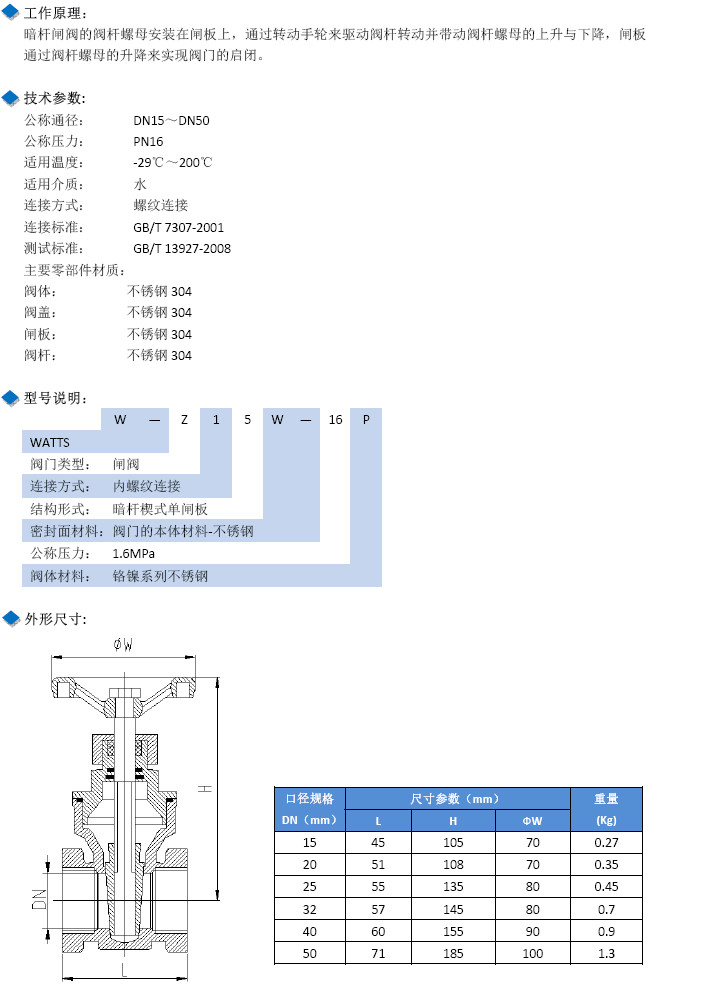 W-Z15W-16P-DN15,W-Z15W-16P-DN20,W-Z15W-16P-DN25,W-Z15W-16P-DN32,W-Z15W-16P-DN40,W-Z15W-16P-DN50