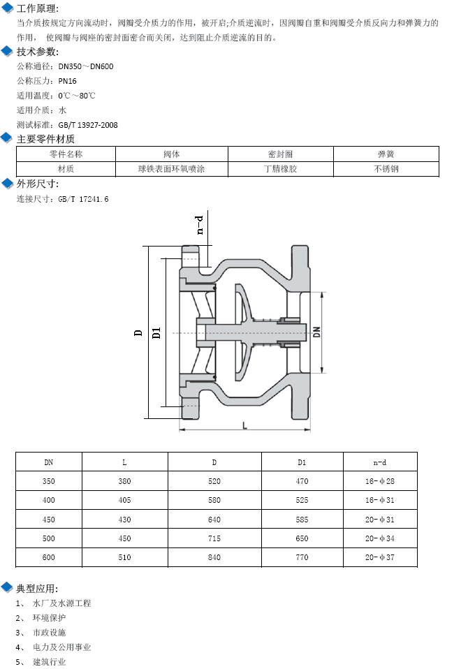 W-H41X-16Q-DN350,W-H41X-16Q-DN400,W-H41X-16Q-DN450,W-H41X-16Q-DN500,W-H41X-16Q-DN600,消声止回阀