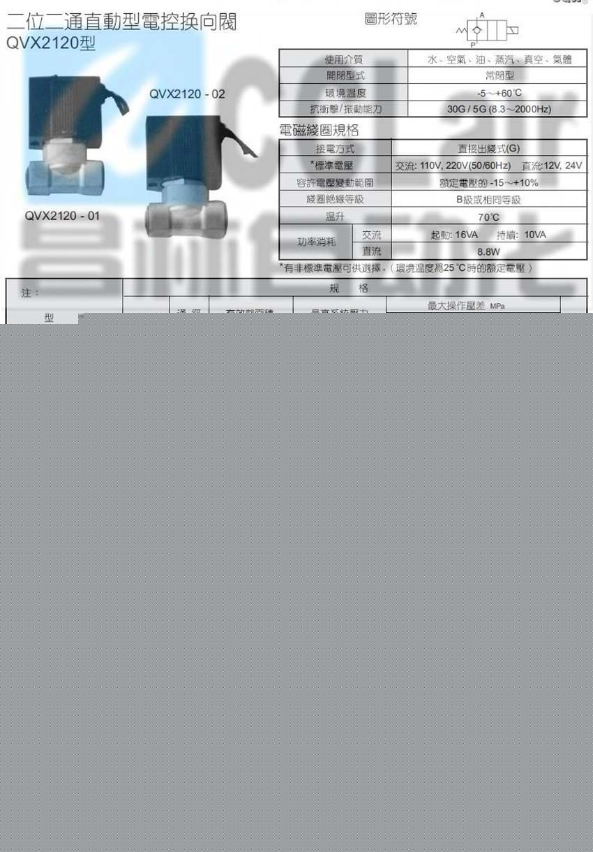 QVX2120V-01-8G,QVX2120S-01-3G,QVX2120S-01-4G,QVX2120S-01-5G,二位二通直动型电控换向阀