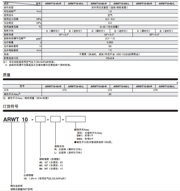 ARWT10-45,ARWT10-60,ARWT10-90,旋转式执行元件