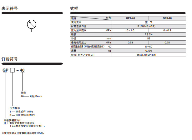 GP1-40,GP3-40,面板安装压力计