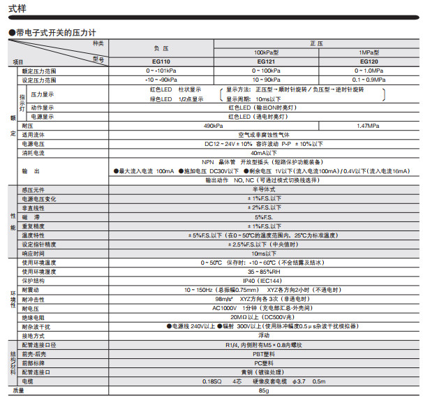 EG110,EG120,EG121,内置电子开关式压力计