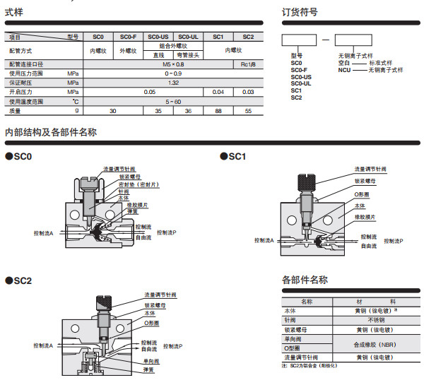 SC0,SC0-F,SC0-US,SC0-UL,SC1,SC2,节流阀SC系列