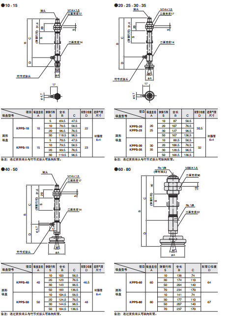 KPPS-10,KPPS-15,KPPS-20,KPPS-25,KPPS-30,KPPS-35,KPPS-40,KPPS-50,KPPS-60,KPPS-80,真空吸盘横向配管内置弹簧型