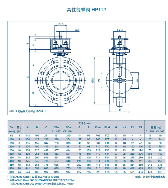 HP112 DN80,HP112 DN100,HP112 DN150,HP112 DN200,HP112 DN250,高性能蝶阀