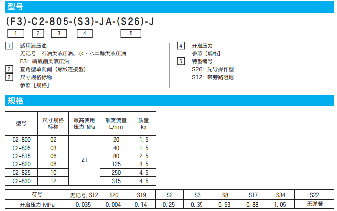 C2-800-JA-J,C2-800-S3-JA-J,C2-800-S8-JA-J,C2-800-S12-JA-J,C2直角型单向阀(螺纹连接型)