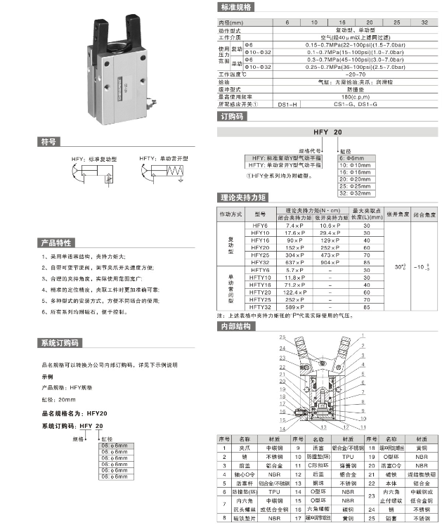 亚德客型气动手指气缸 HFY-10,HFY-16,HFY-20,HFY-25,HFY-32,HFTY-10,HFTY-16,HFTY-20,HFTY-25,HFTY-32
