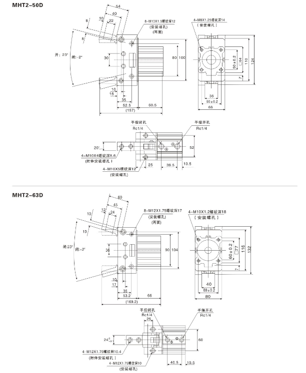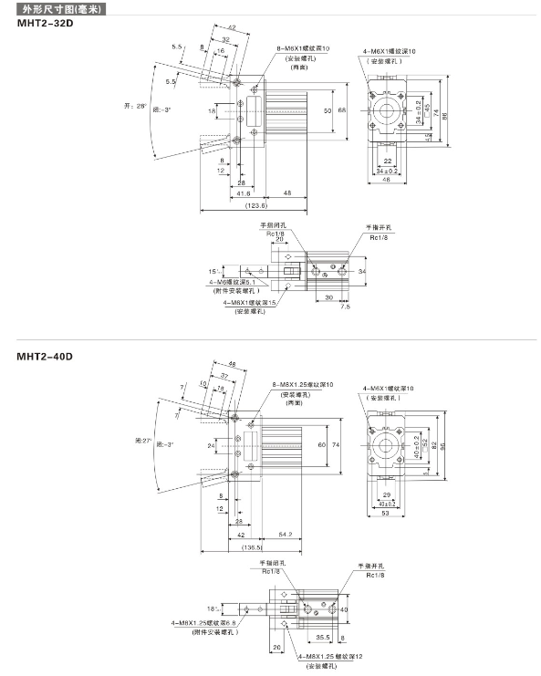 气动手指气缸 MHT2-32D,MHT2-40D,MHT2-50D,MHT2-63D